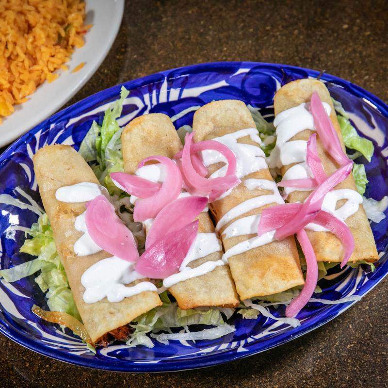 Lunch specials are made with your choice of ground beef or chicken tinga and topped with red sauce.